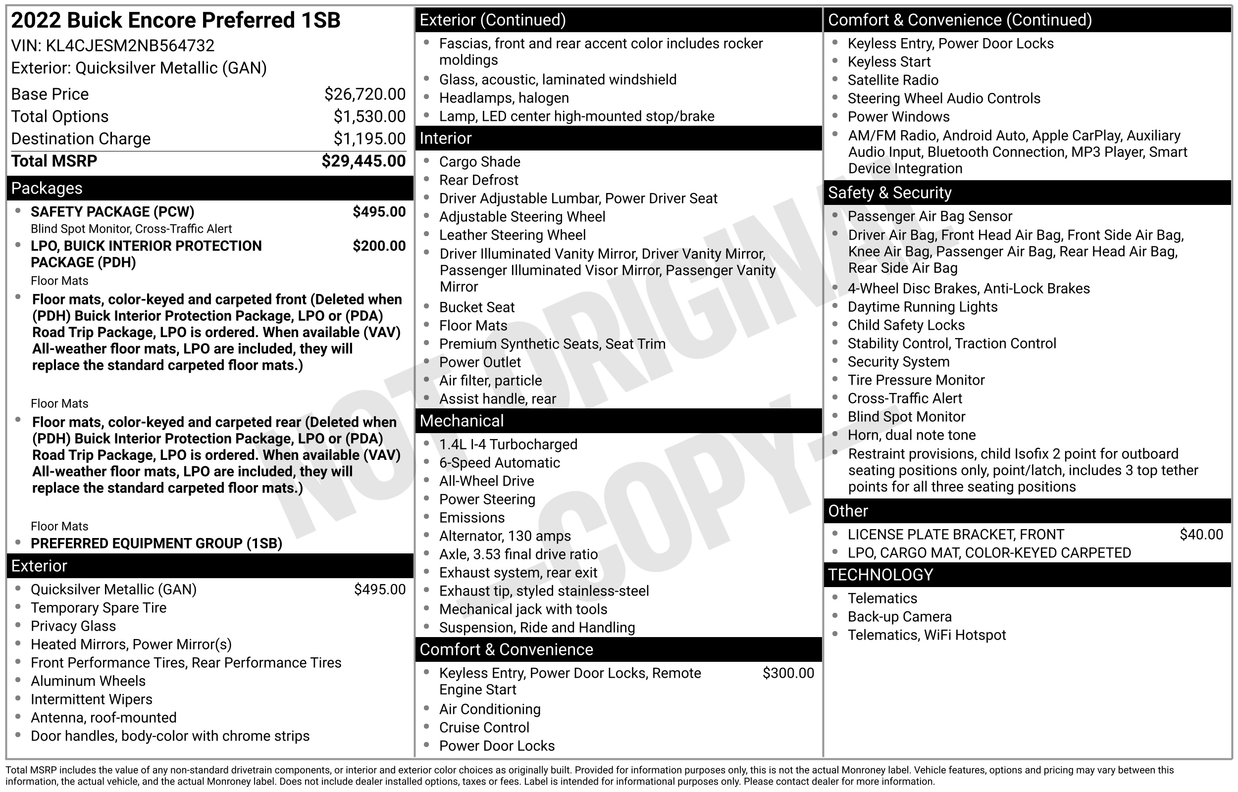 Optimizing the subcompact SUV experience with a focus on premium serenity and city-friendly agility, this 2022 Buick Encore Preferred (Stock #NB564732) arrives with 70,666 miles and the upgraded performance that marked its final production years. Under the hood, the enhanced 1.4L Turbocharged engine delivers a punchy 155 horsepower, providing a noticeable 12% power boost over previous versions while maintaining a thrifty EPA-estimated 32 MPG on the highway. The cabin is a masterclass in insulation, featuring Buick's signature QuietTuning technology with triple door seals and acoustic-laminated glass to create a remarkably hushed environment even at highway speeds. Tech-wise, the 7-inch diagonal infotainment system offers seamless, standard integration for Apple CarPlay and Android Auto , while the versatile interior features a fold-flat front passenger seat to accommodate items up to eight feet long. With its elevated seating position, 18-inch aluminum wheels, and a nimble footprint that makes parking effortless, this Encore is a sophisticated choice for the urban driver who refuses to sacrifice luxury for practicality.Previously rental vehicle . Visit Car2Sell online at car2sell.us to see more pictures of this vehicle or call us at 888-703-0003 today to schedule your test drive.We Finance Good and Bad credit. Warranty available. Prices include(s) all costs to be paid by a consumer except for licensing costs registration fees taxes and delivery charges.