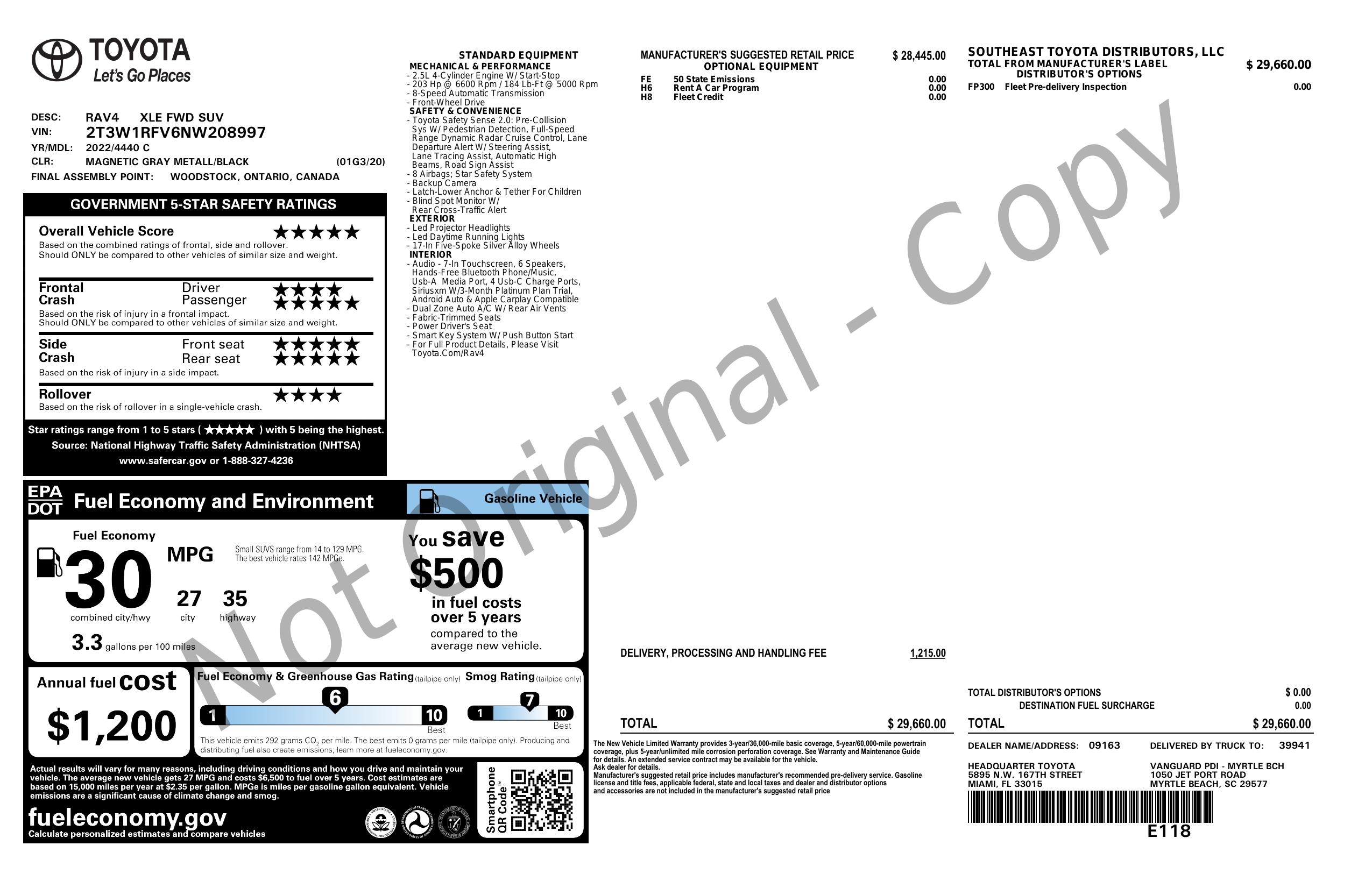 • VIN # 2T3W1RFV6NW208997