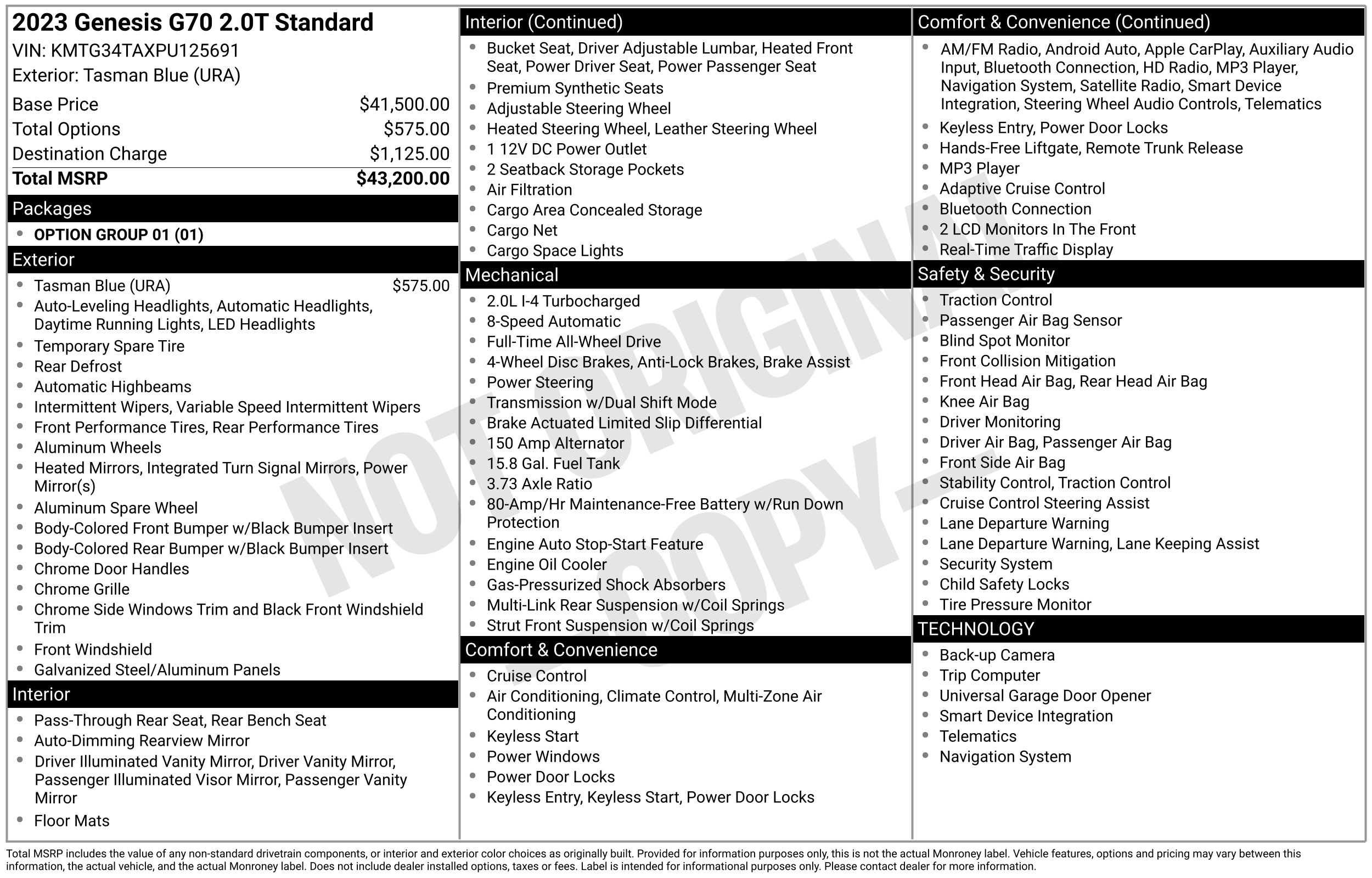 This 2023 Genesis G70 2.0T (Stock #PU125691) is a sharp, driver-focused luxury sedan that offers a premium European-style experience with a more accessible price tag, currently showing 43,074 miles. Positioned as a direct competitor to the BMW 3 Series, it features a 252-hp turbocharged engine, a 10.25-inch navigation-ready touchscreen, and a cabin wrapped in high-quality materials. At this mileage, the car has completed its early life phase and remains under the remainder of its 5-year/60,000-mile bumper-to-bumper warranty. It represents a fantastic value for those seeking a stylish, tech-heavy commuter that doesn't compromise on safety or interior refinement, though the 2.0T engine is tuned more for balanced daily driving than raw track performance. Visit Scarpa Motors LTD to shop our great deals. You can contact us or call 347-352-3534 to schedule your test drive today.