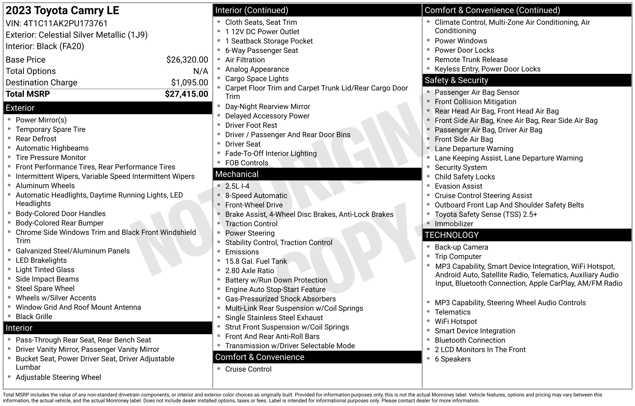 • VIN # 4T1C11AK2PU173761