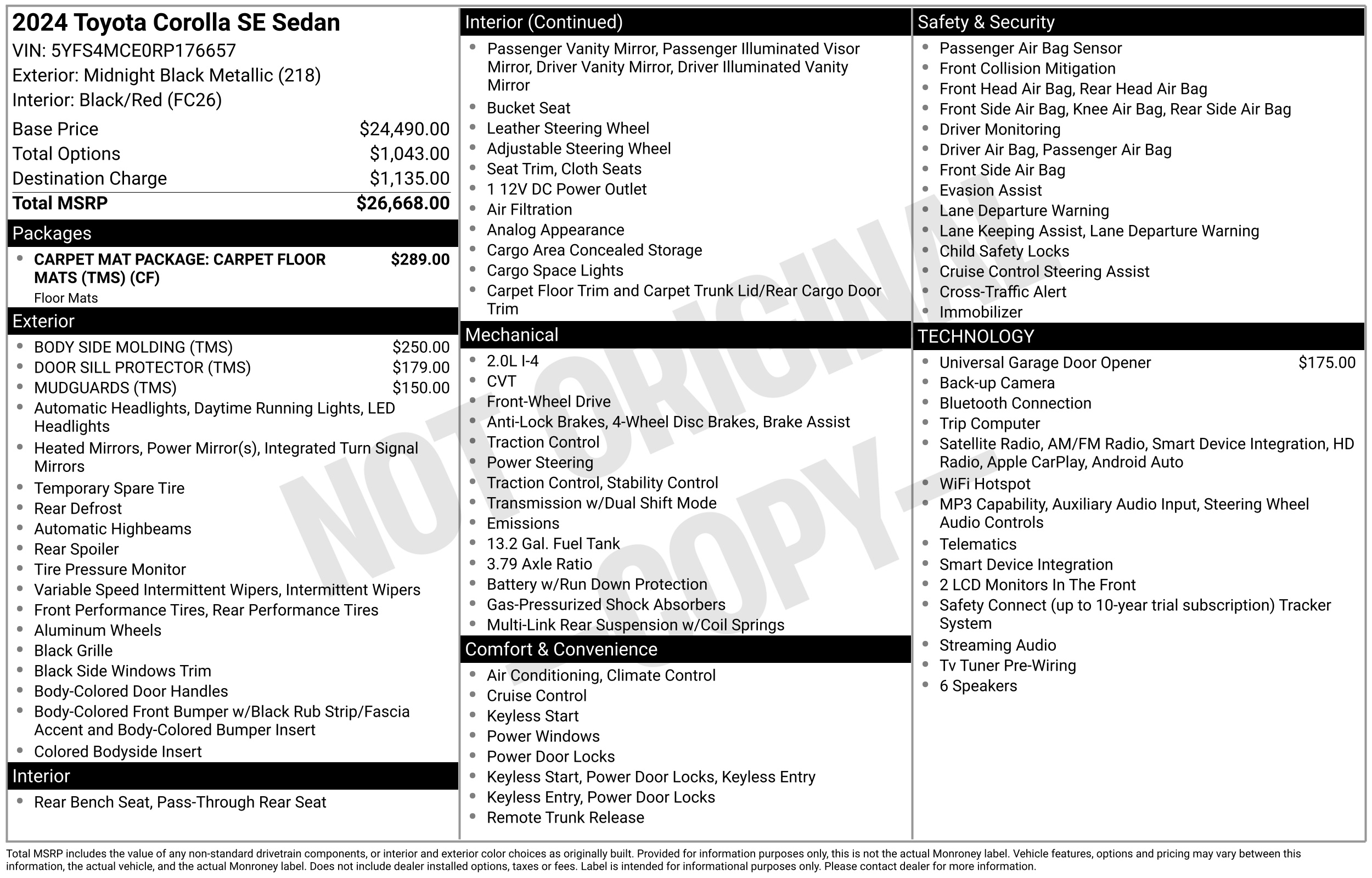 • VIN # 5YFS4MCE0RP176657