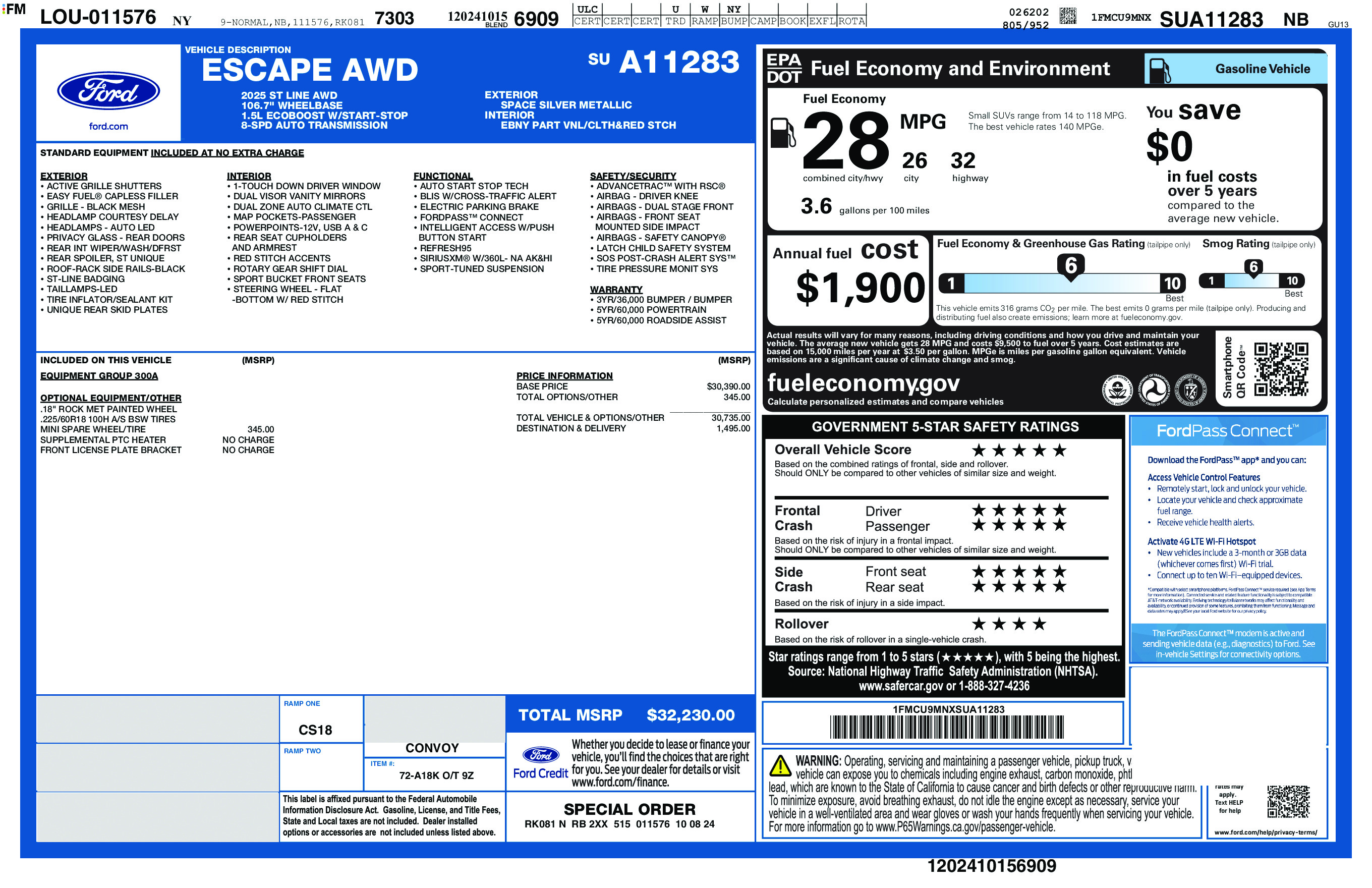 • VIN # 1FMCU9MNXSUA11283